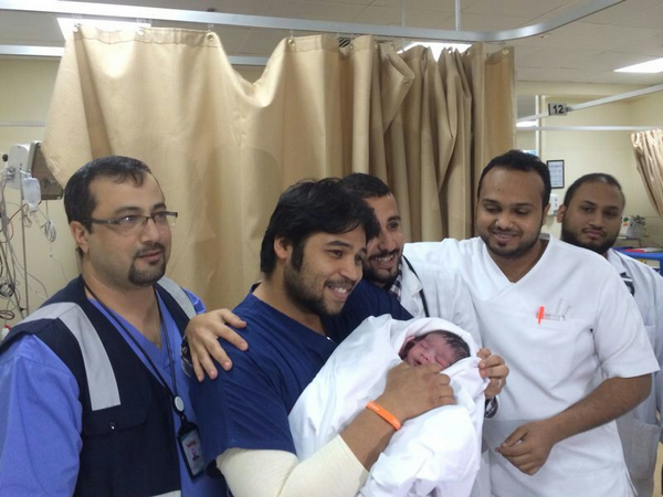 وشاهد أفراد الطاقم الطبي والتمريضي الحاجة مع زوجها في سيارة خاصة وهي مغطاة بالشراشف وفي حالة مخاض وولادة، عندها تدخل أخصائي طب الطوارئ الدكتور أنس درويش، وجميع الطاقم الطبي والتمريضي، لاستقبال الحاجة وتوليدها من خلال إسعافها وإنقاذ حياتها وحياة الجنين، وتمت عمليه الولادة بنجاح ولله الحمد، وقد سجلت حاله ولادة الطفلة 'جوري' كأول طفله يستقبلها قسم الطوارئ في برج مستشفى الملك فيصل بالعاصمة المقدسة الجديد، الذي تم النقل له في غرة شهر ذي الحجة الحالي.